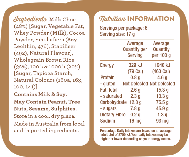 - Light and crunchy with a milk choc flavoured topping and sprinkles for extra fun