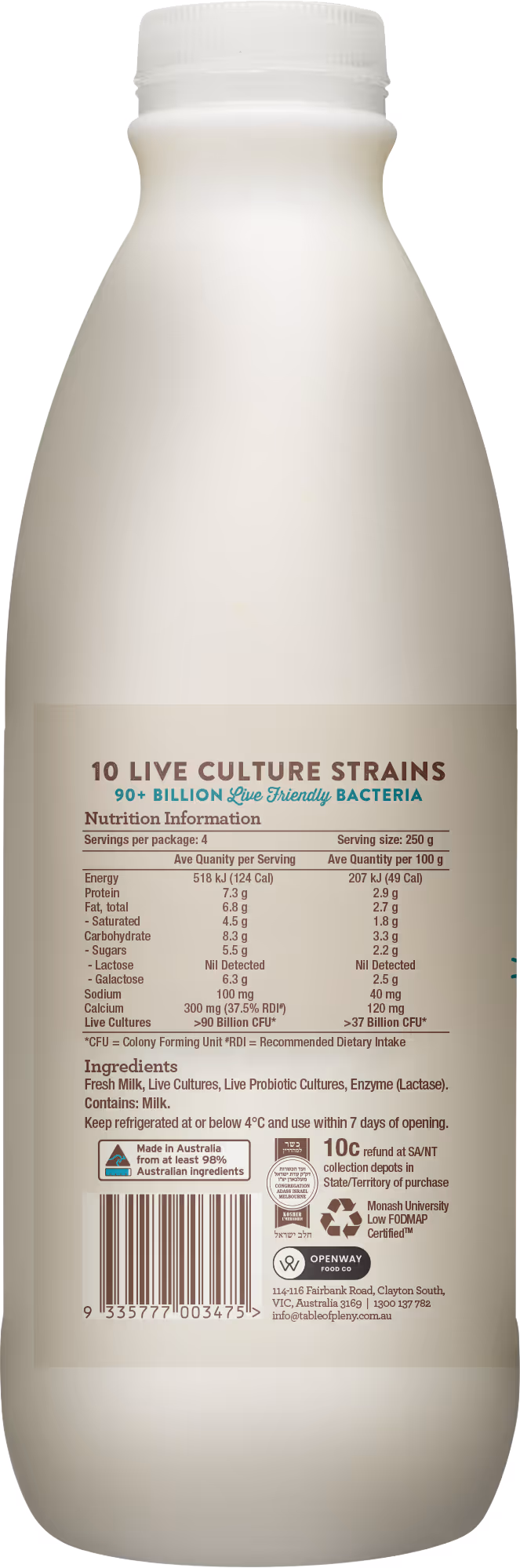 - Made with fresh milk from grass-fed Gippsland cows