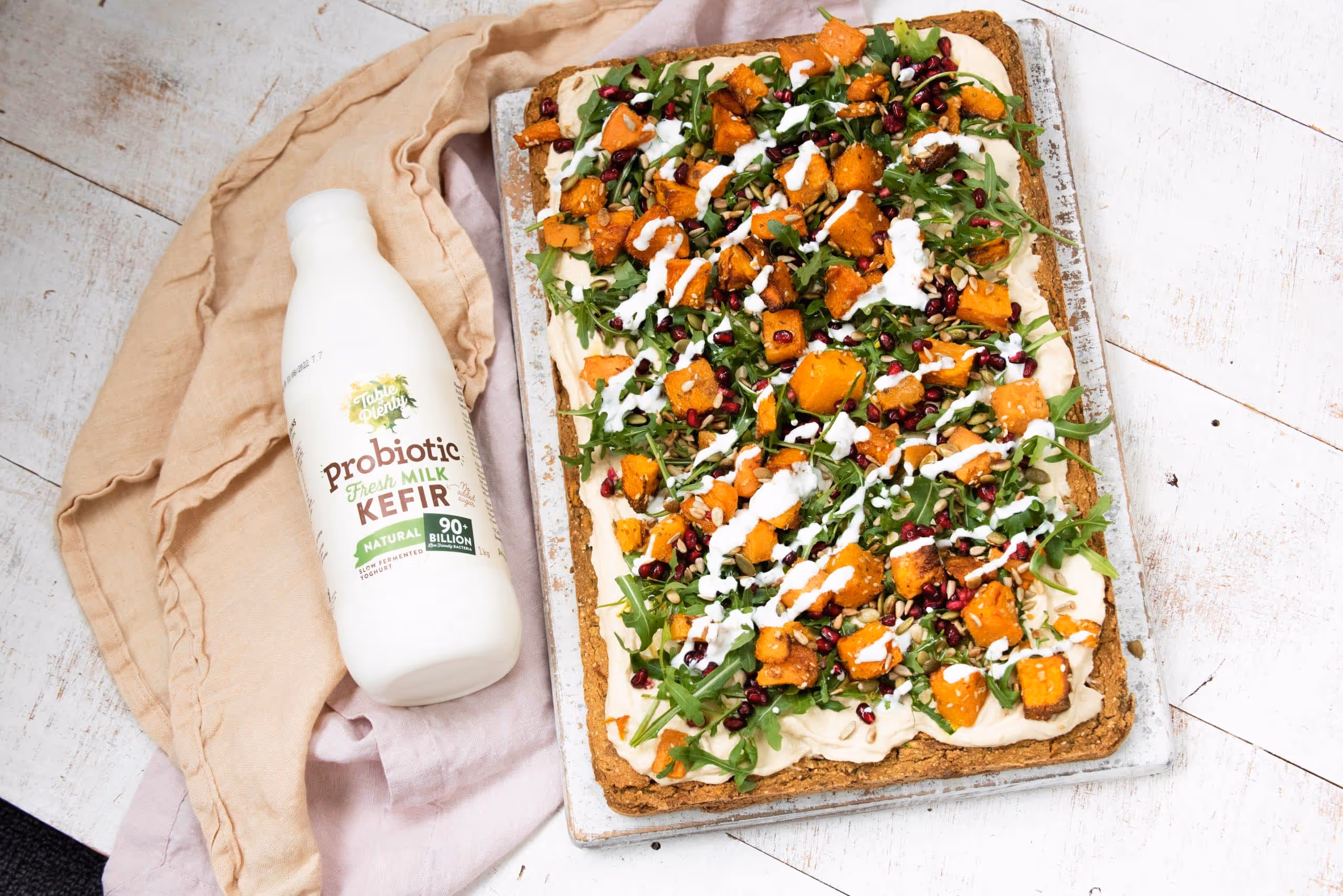 Vegetable & Falafel Slice with Garlic Kefir Tzatziki Dressing